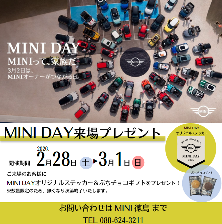MINI DAYオリジナルステッカー&ぷちチョコギフトをプレゼントいたします🍫🎁